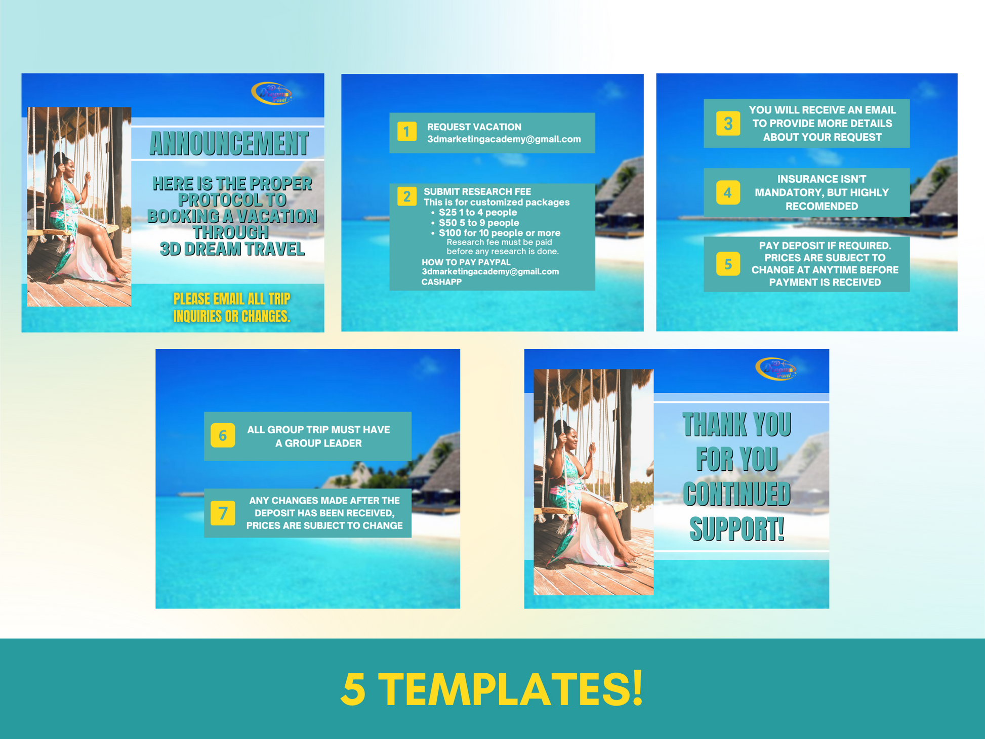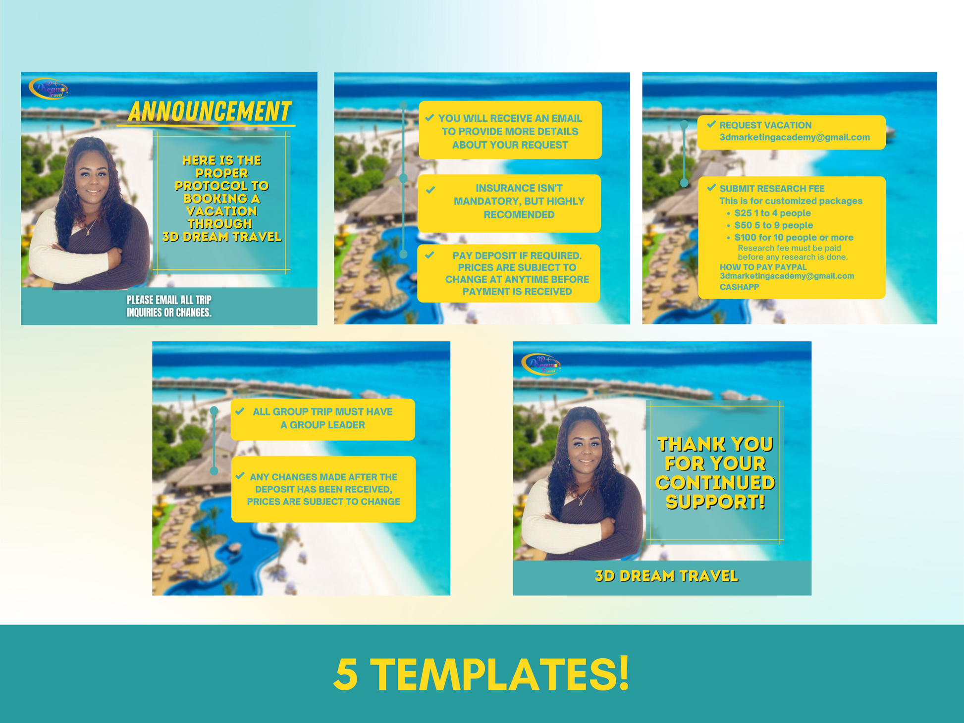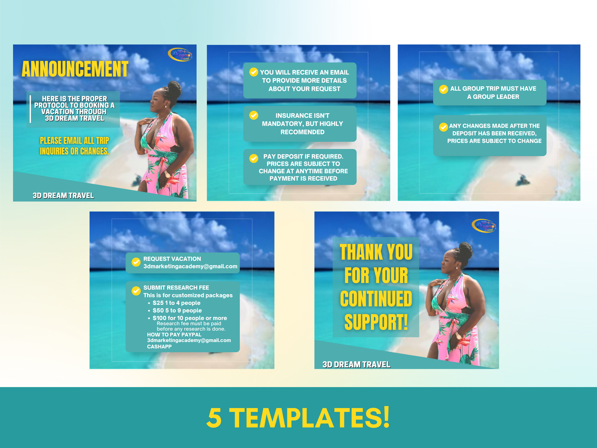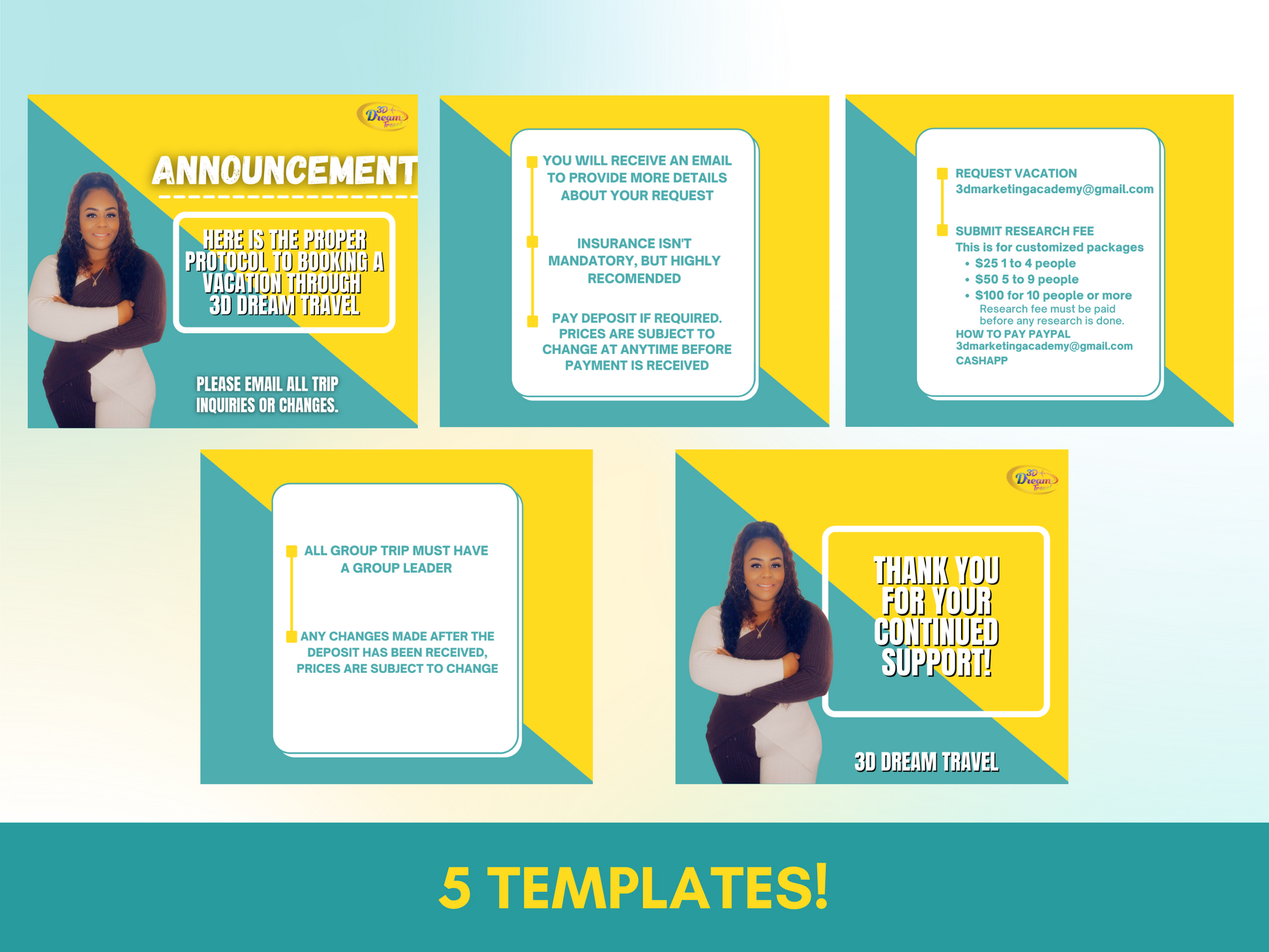 Post this in your Facebook group or page and pin to the top so potential clients will know how to request a customized quote. 5 different designs